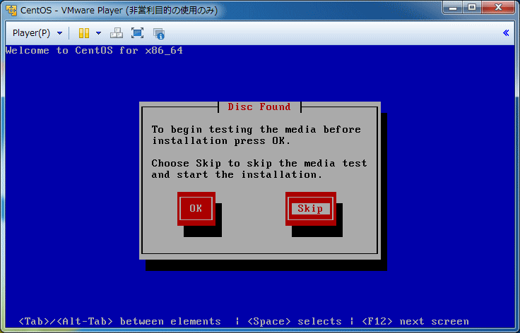 カーソルキーで[Skip]ボタンを選択し、Enterキーを押します。
