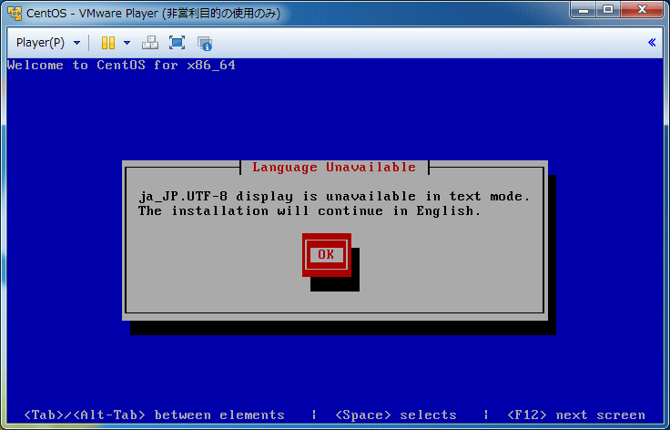 "Language Unavailable" と表示されますが、気にせず Enter キーを押します。