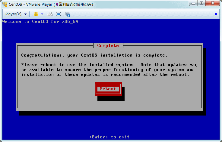 インストールが完了したら以下の画面になりますので、rebootしてください。