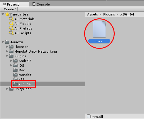 UnityEditor の Project ビューから、Assets/Plugins/iOS/Monobit ディレクトリを開き、その中の mun.dll を選択します。