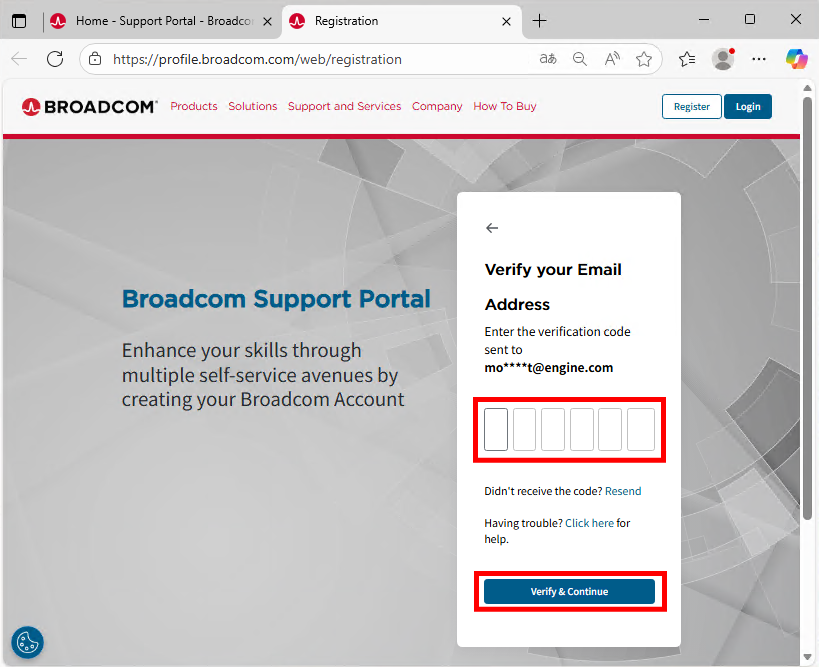 6桁の認証コードを入力し、[Verify & Continue] ボタンを押してください。