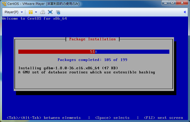 ※ ウィンドウ枠内をクリックした時点で、キーボード/マウス制御が VMware Player に乗っ取られますが、