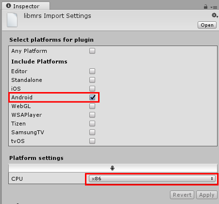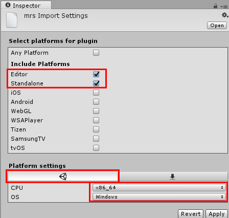 mun.dll を選択したら、Inspector の表示にある Platform 設定について、「iOS」だけが選択されていることを確認してください。